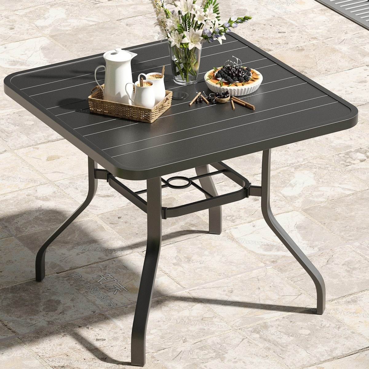 35" Metal Patio Square Dining Table with 1.57" Umbrella Hole