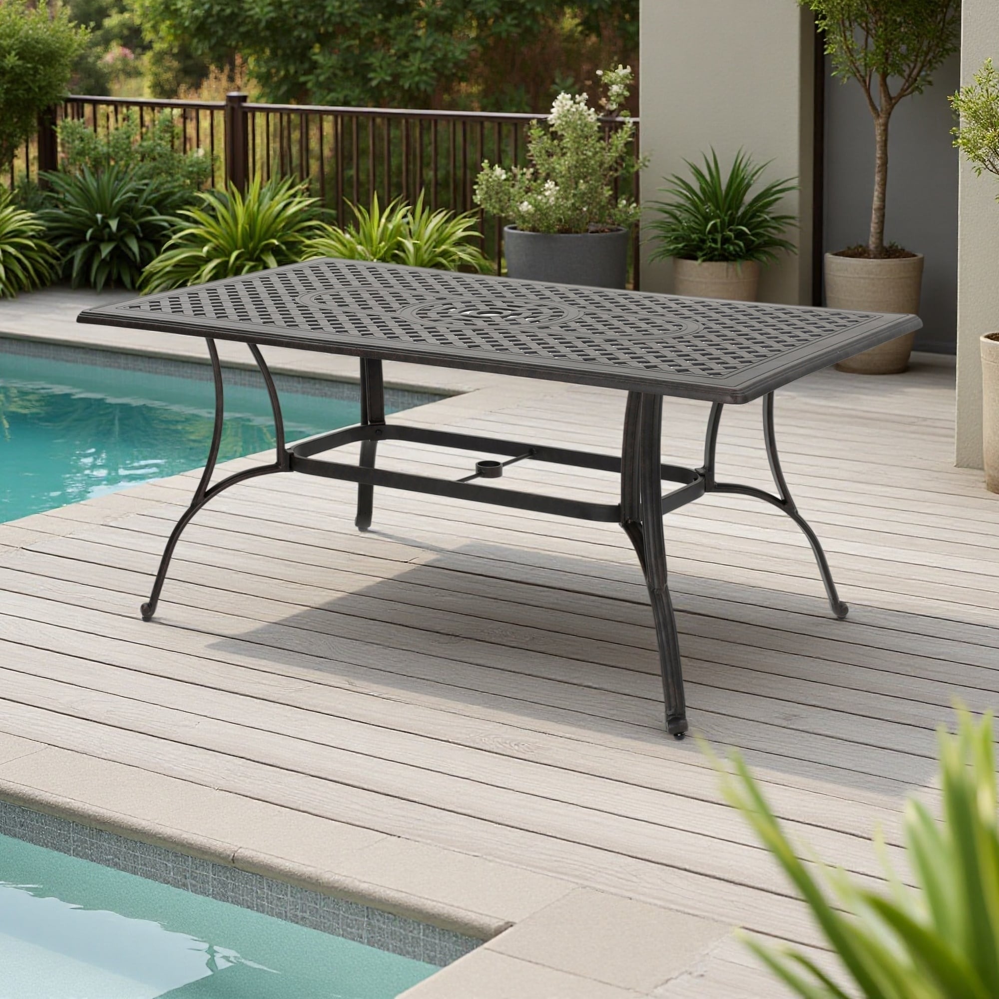 Outdoor Aluminum Rectangular Dining Table with Umbrella Hole