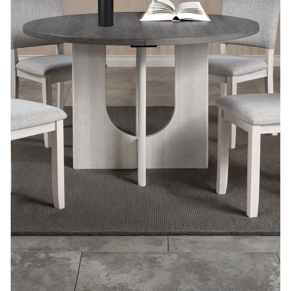 Classic Round Dining Table 1pc Dining Room Furniture Gray Two-Tone Finish U-shaped Pedestal Base Table