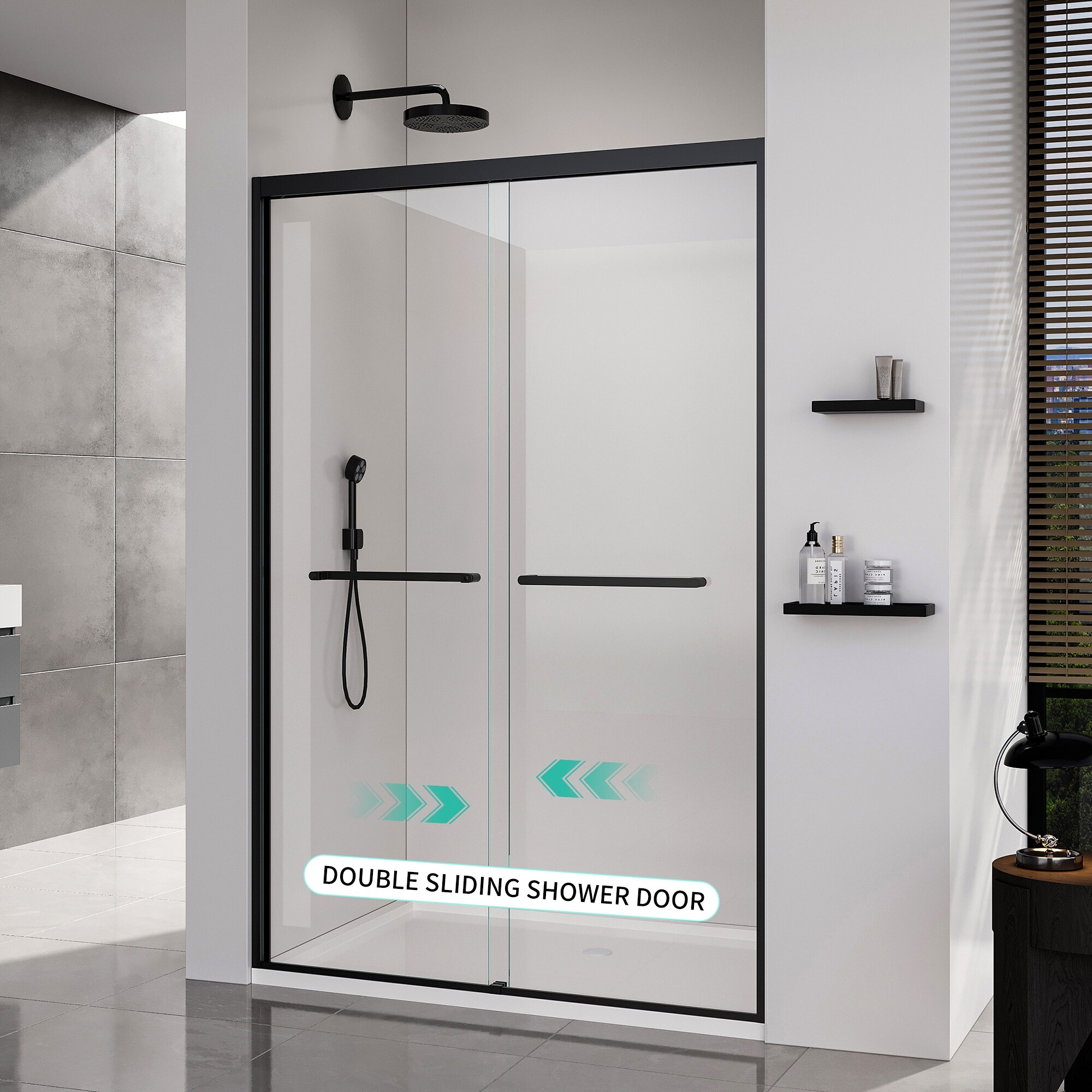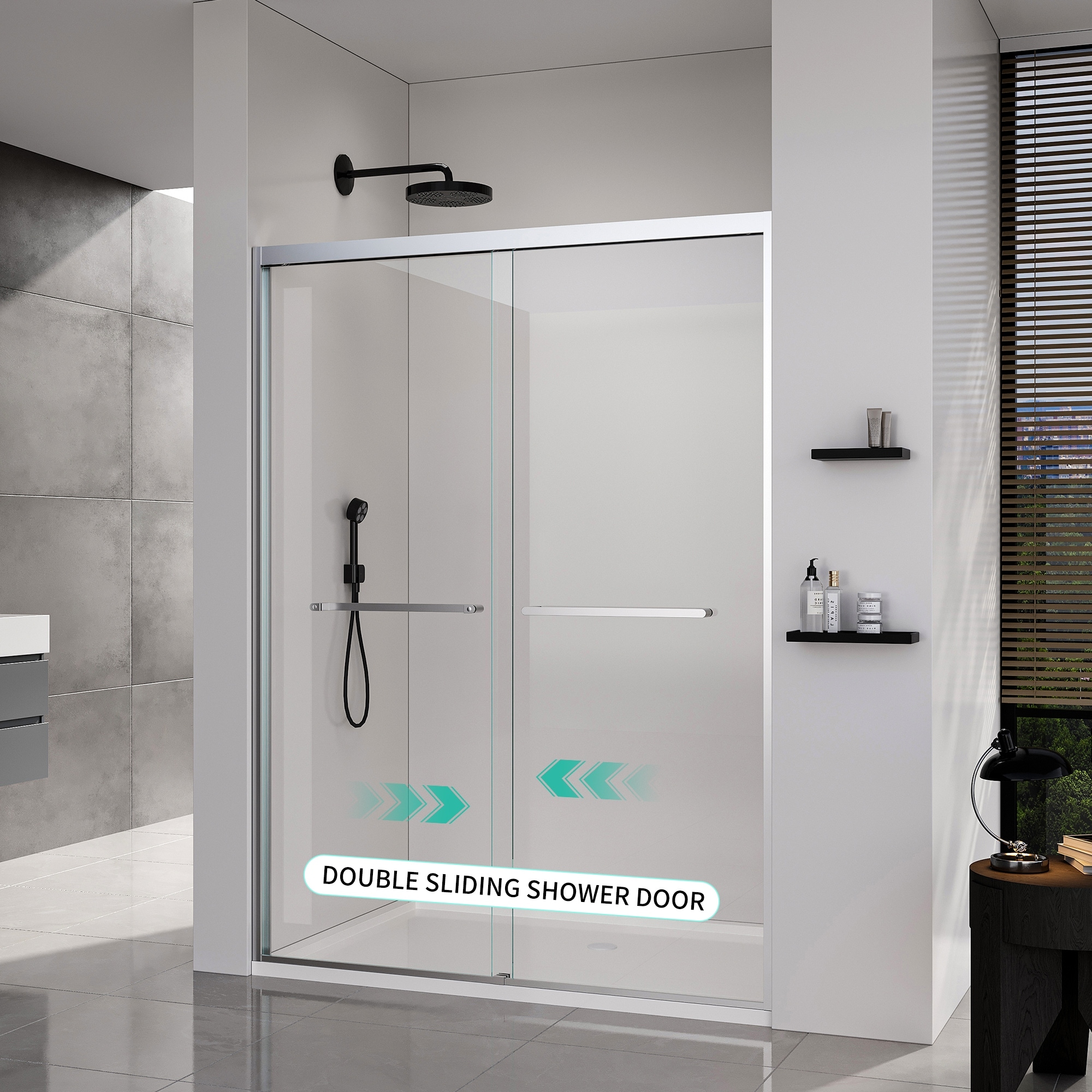 56" - 60" W x 72" H Double Sliding Shower Door, Semi-frameless Bypass Bathroom Sliding Door with 1/4" (6mm) Tempered Glass