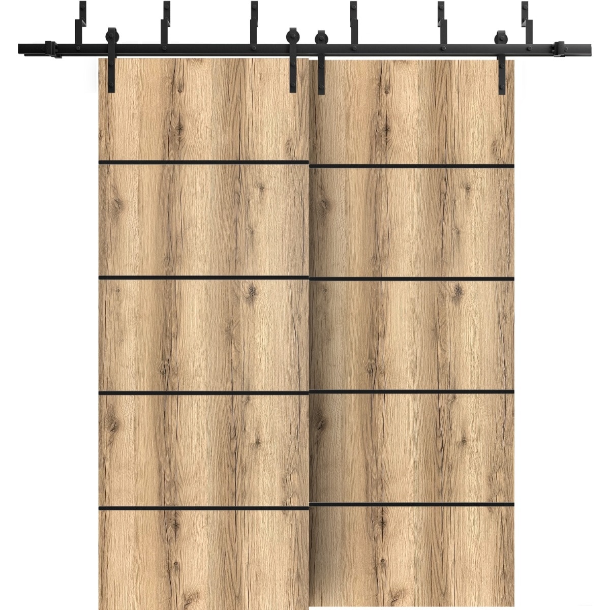 Modern Double Barn Door 36 x 80 inches | Ego 5011 Natural Oak | 13FT Silver Rail Track Set | Solid Panel Interior Doors