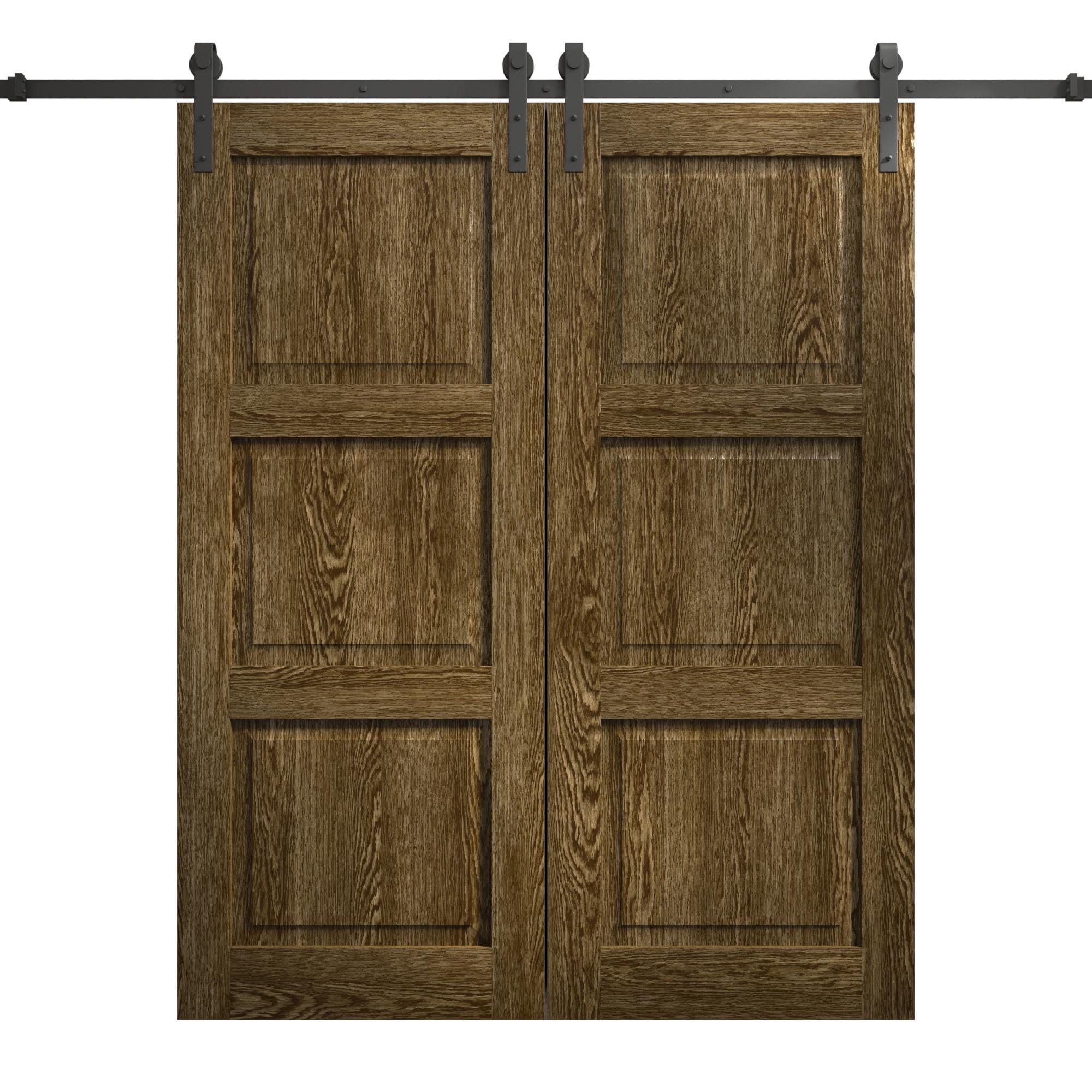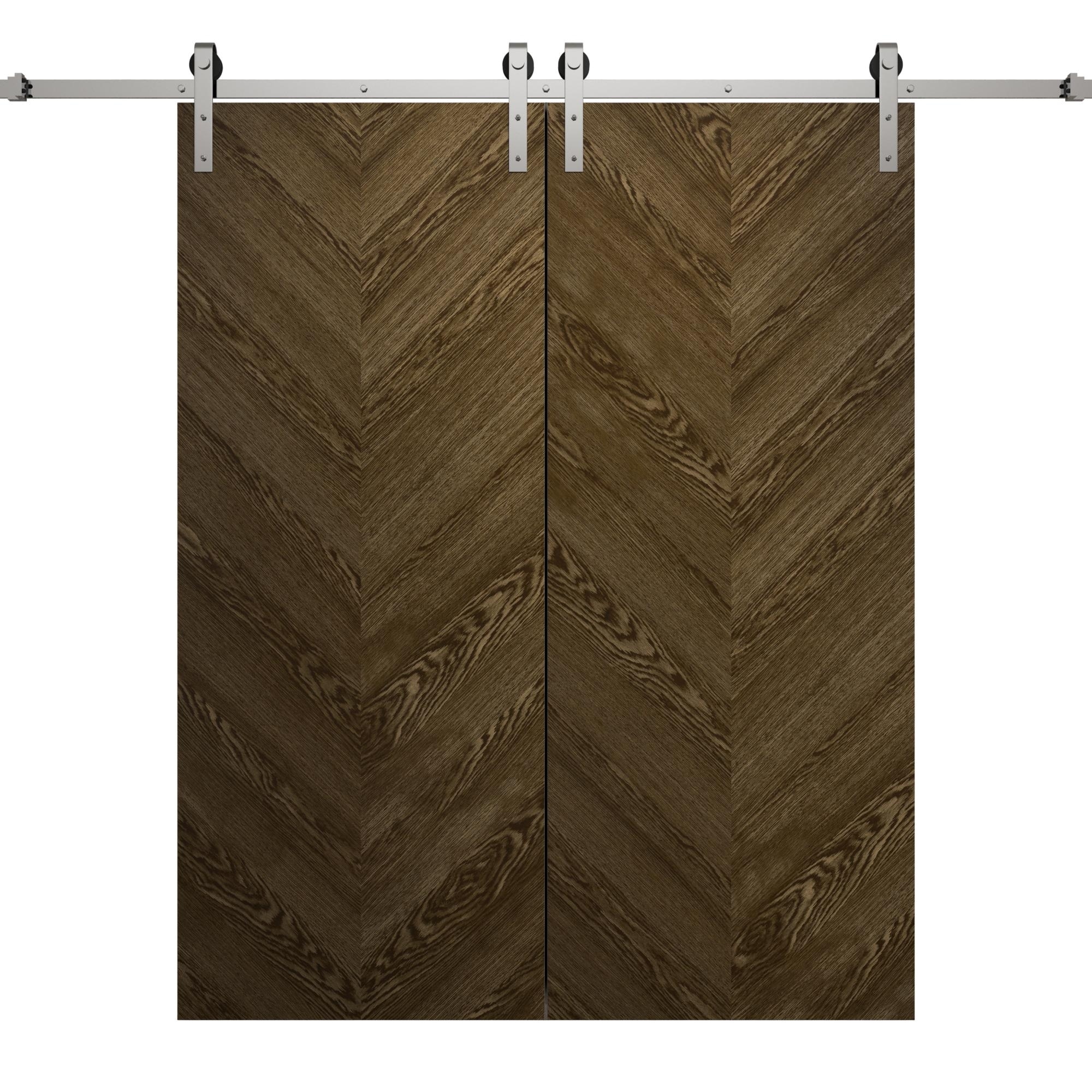 Modern Double Barn Door 36 x 80 inches | Ego 5010 Marble Oak | 13FT Silver Rail Track Set | Solid Panel Interior Doors