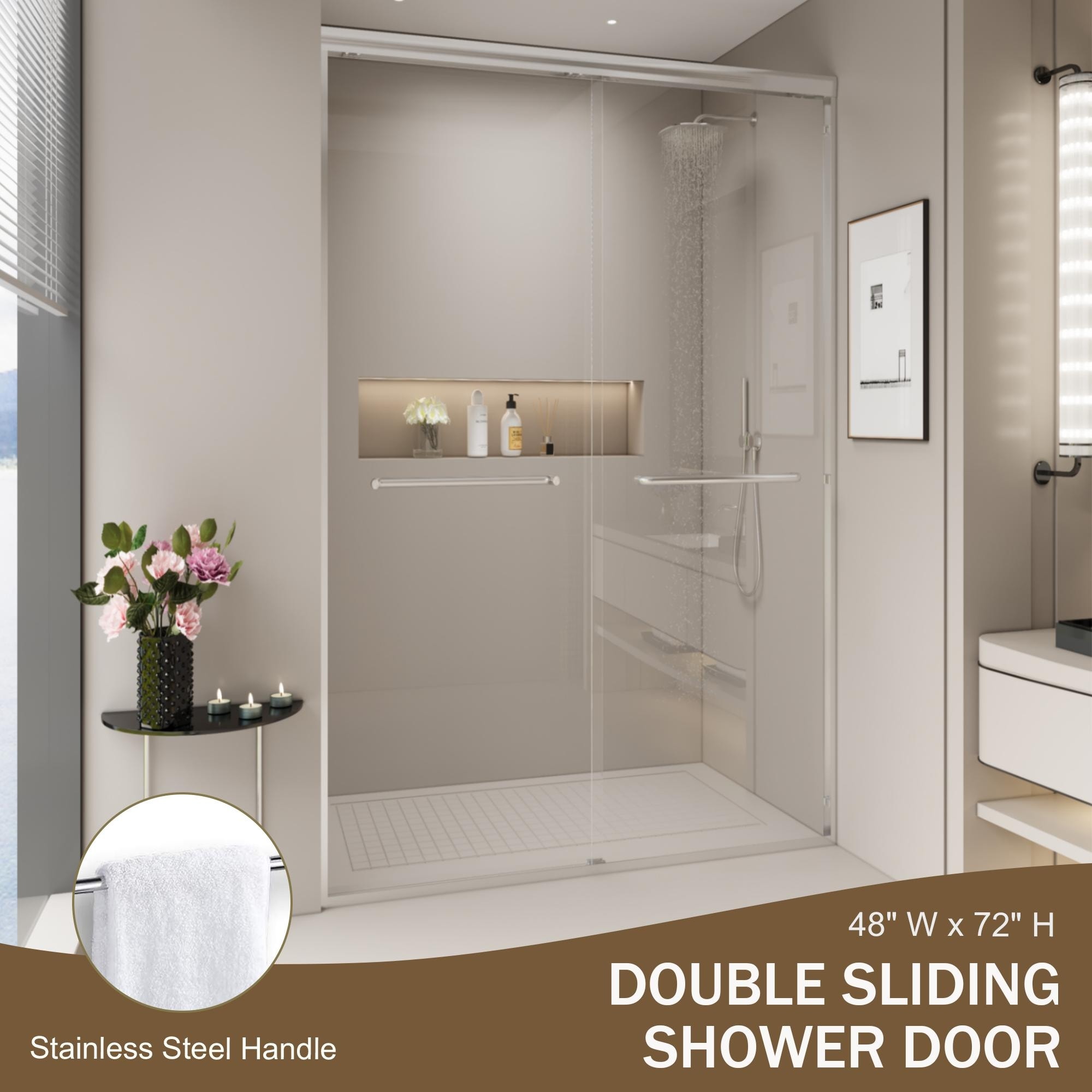 44-48 in. W x 72 in. H Double Sliding Shower Door, Semi-frameless Bypass Bathroom Sliding Door with 1/4" (6mm) Tempered Glass