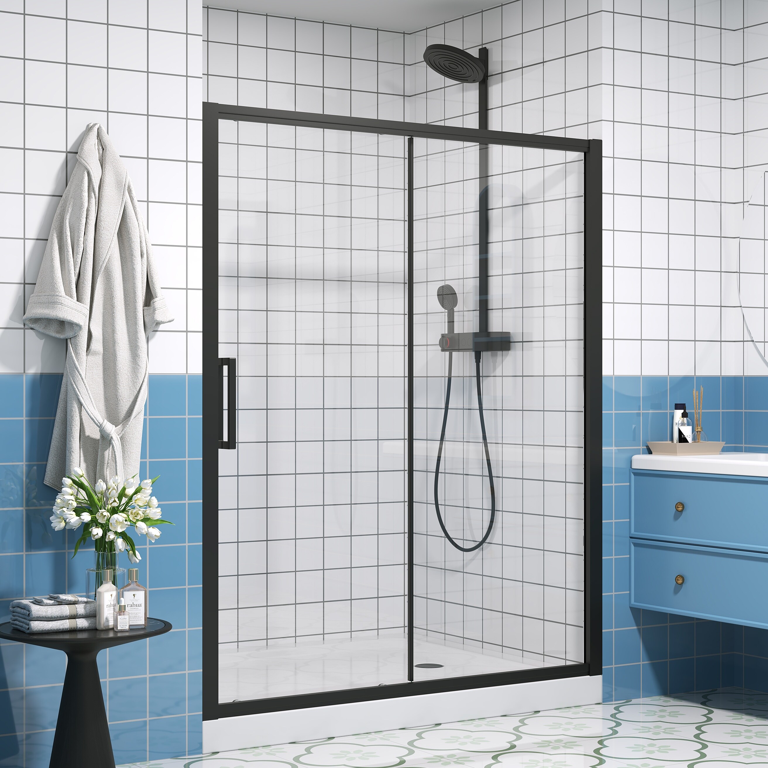Single Sliding Shower Door 56-60" W x 72" H Semi-Frameless Shower Glass Panel, 1/4" (6mm) Clear Tempered Glass