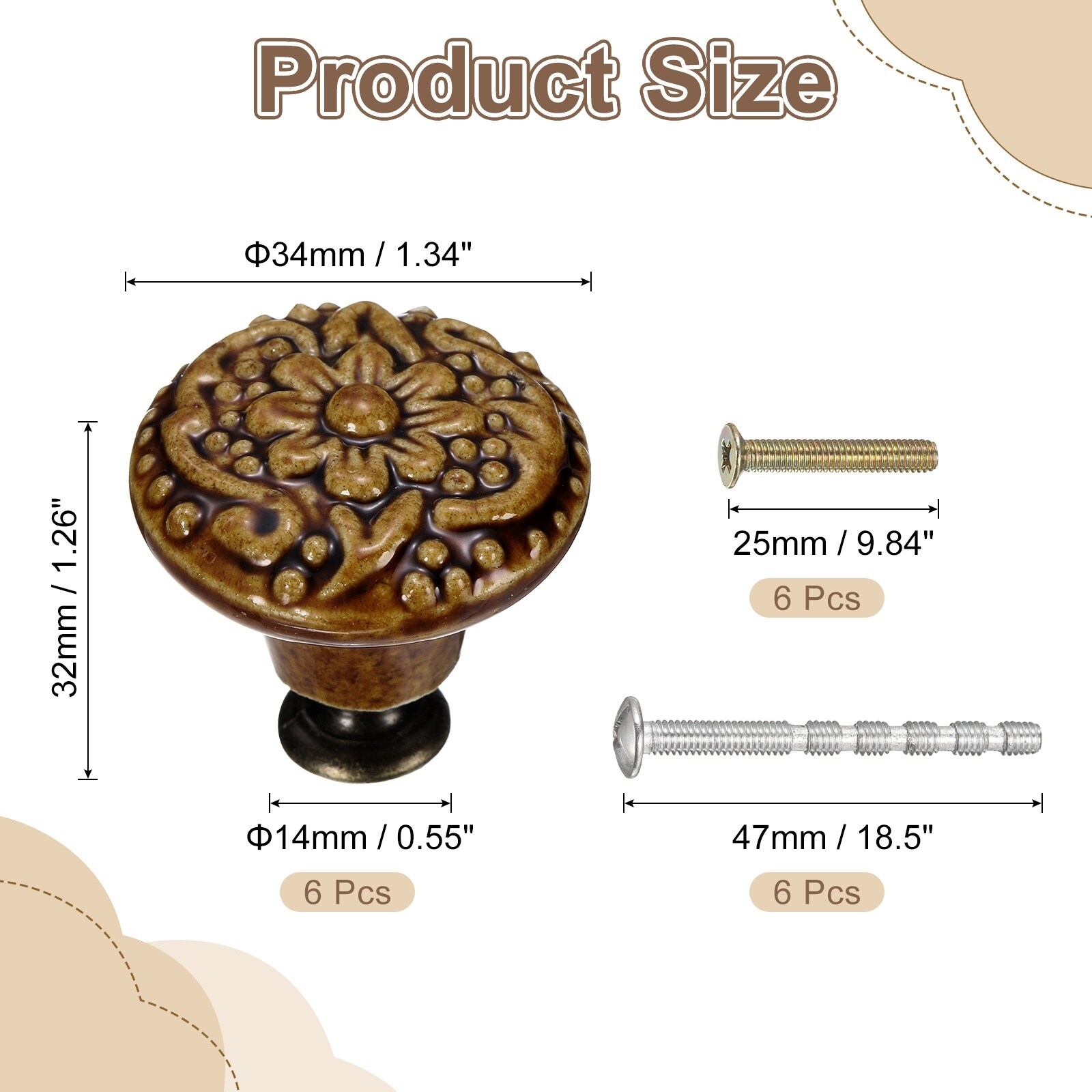 34mm Flower Pattern Raised Base Ceramic Knobs with Screws