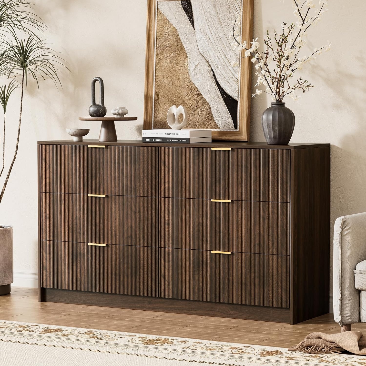 6 Dresser Chest,Fluted 6 Drawer Storage Dresser for Bedroom