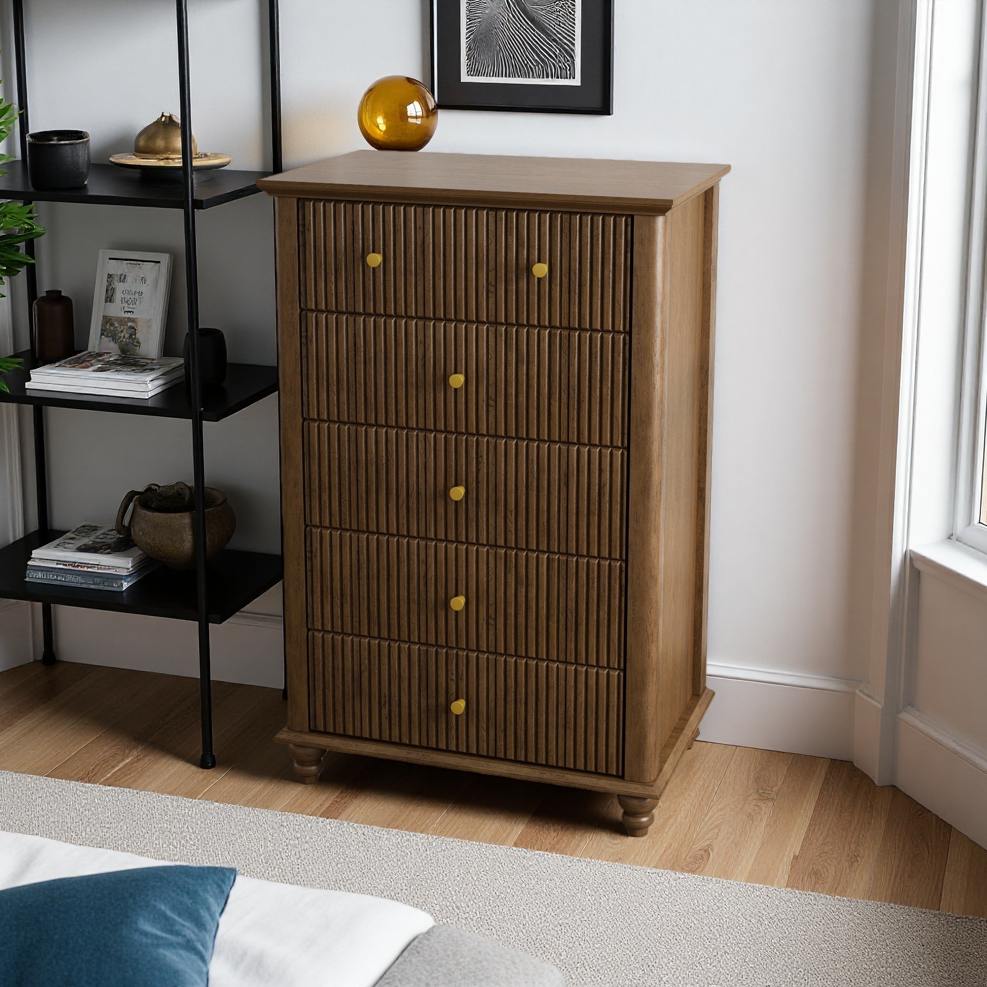 45" MDF & Rubber Wood Fluted 5-Drawer Dresser with Metal Handles