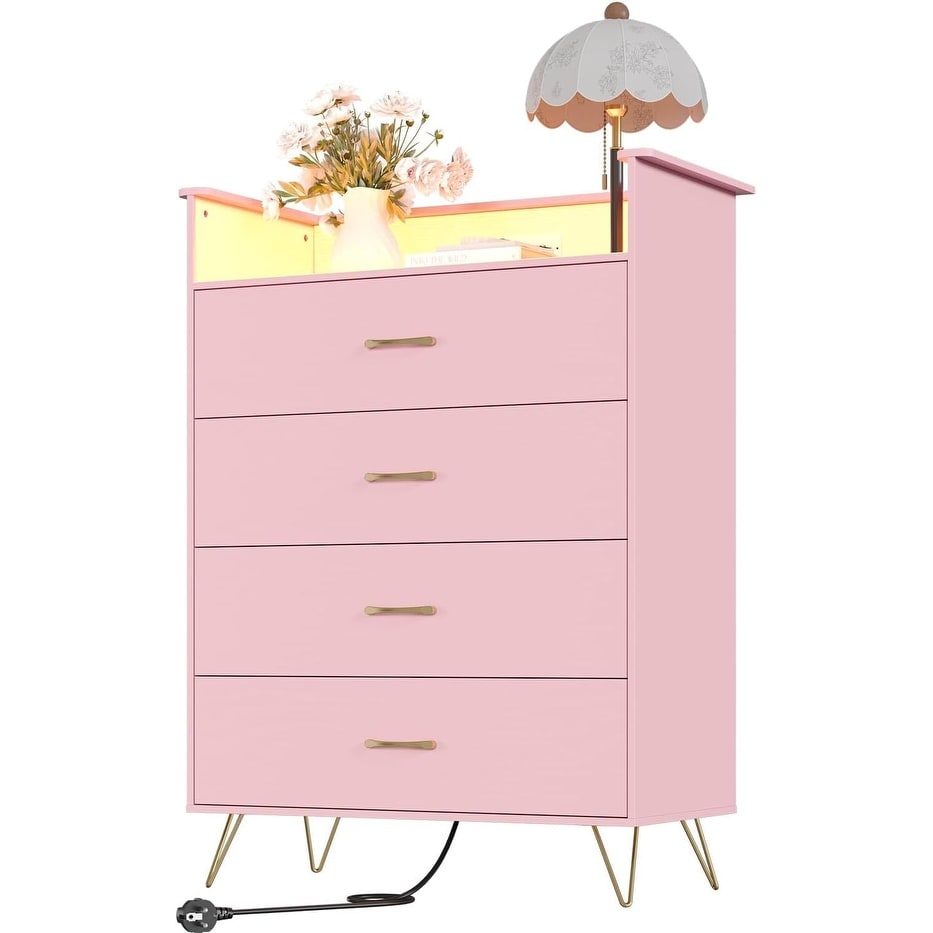 4-Drawer Dresser with App-Controlled RGB Lights & Charging Station, Large Capacity Modern Dresser for Bedroom