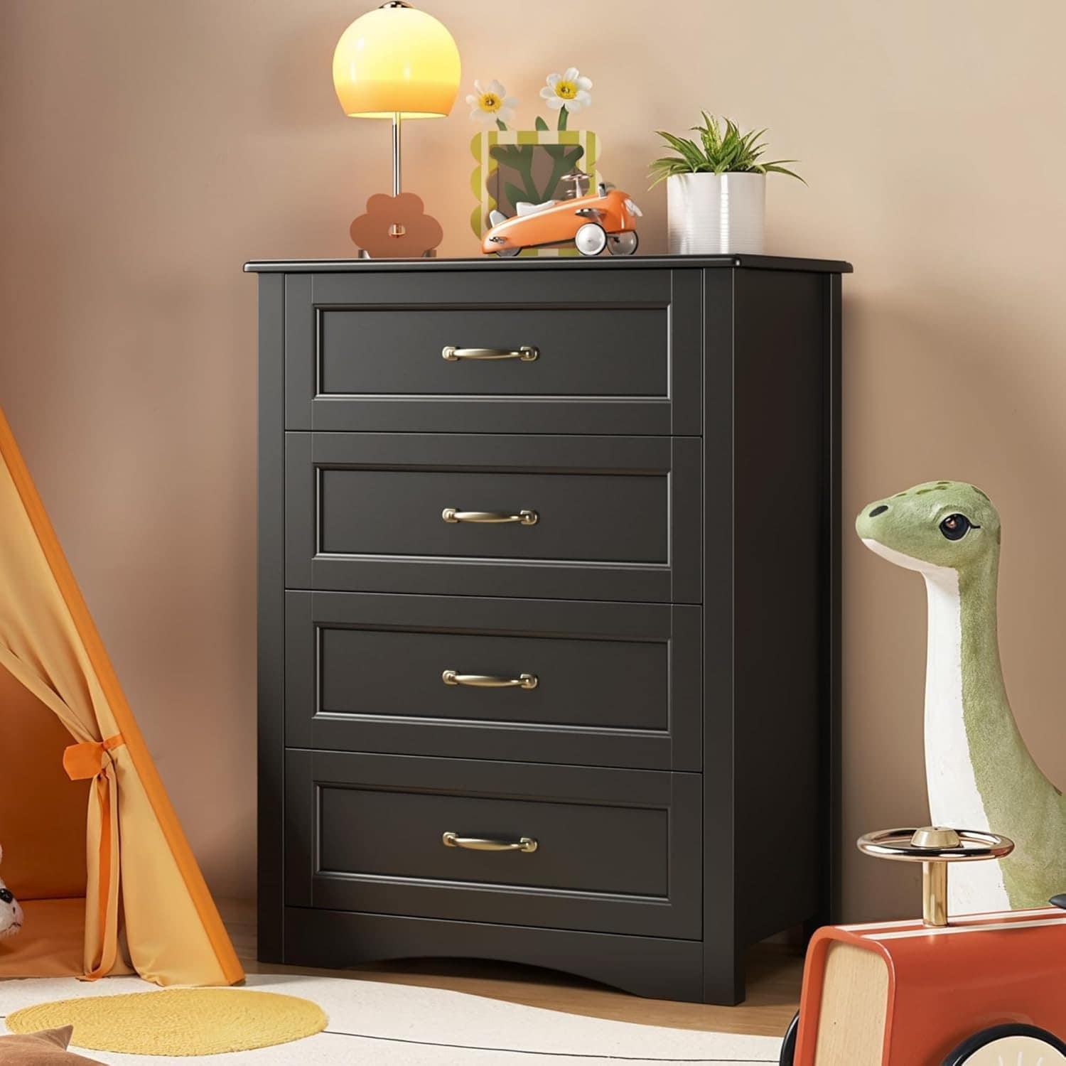 4-Drawer Wooden Dresser for Bedroom, Living Room, and Office - Black