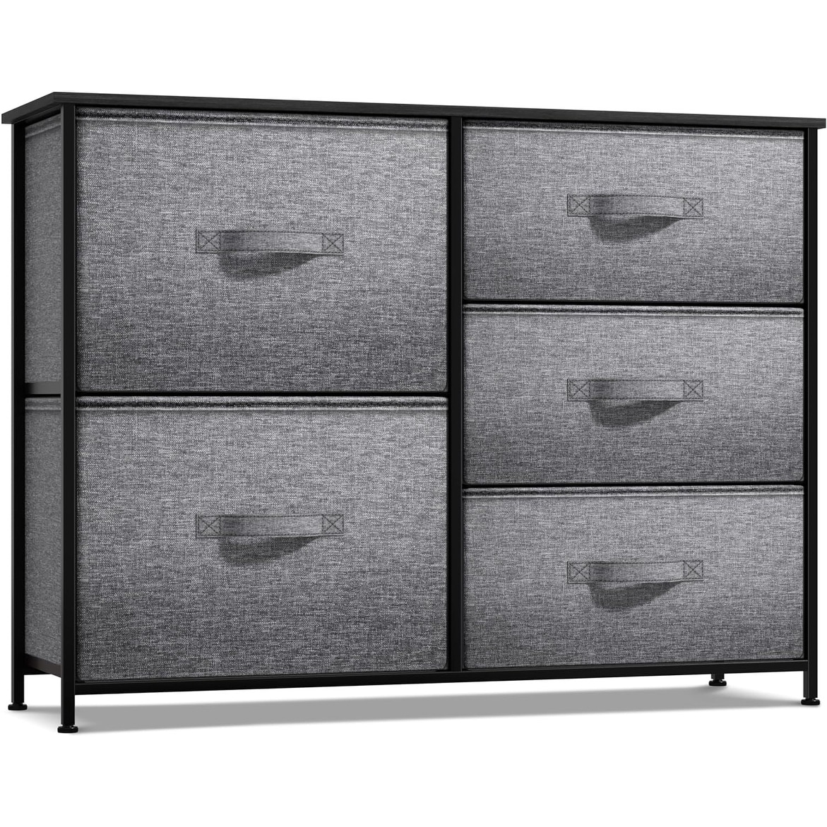 5-Drawer Storage Dresser with Steel Frame and Wood Top, Portable Organizer for Bedroom, Living Room, and Closet