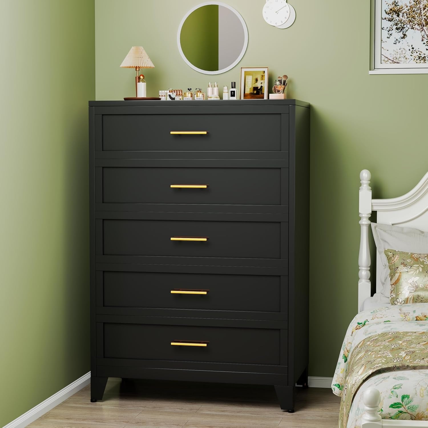 5-Drawer Tall Metal Dresser for Bedroom, Large Storage Cabinet with Adjustable Feet, Anti-Tip Device, Easy Assembly