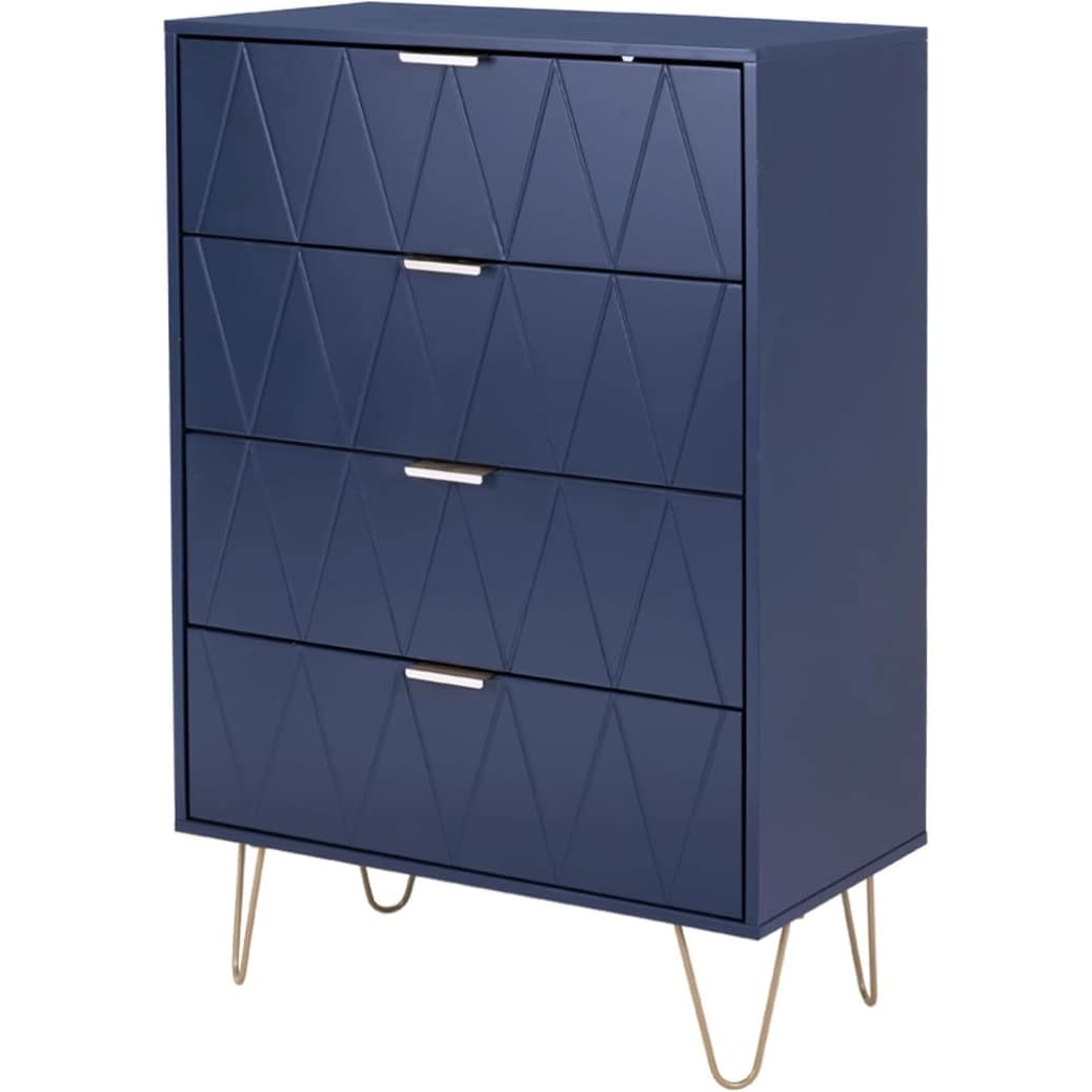 Navy Blue 4-Drawer Wooden Dresser with Metal Legs and Anti-Tip Device for Bedroom or Living Room