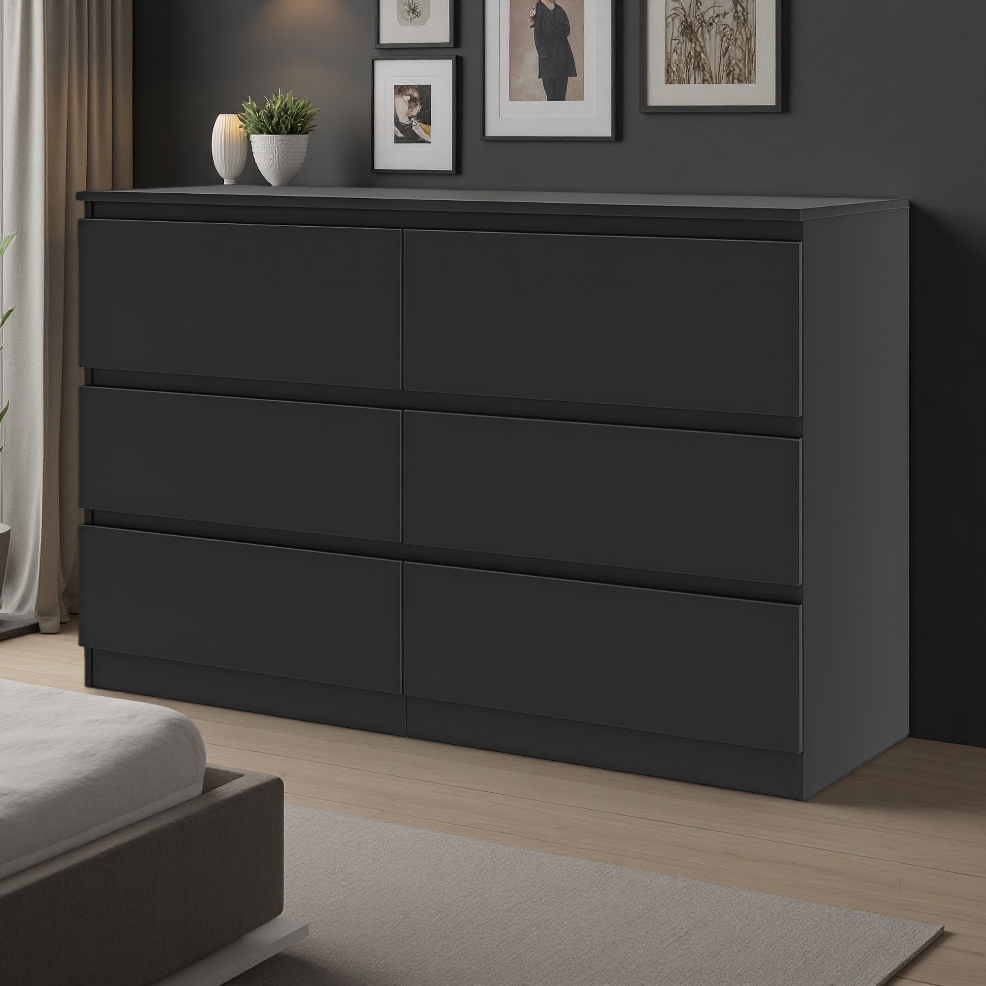 47.2" Wood Modern Black 6-Drawer Dresser with Large Storage Space