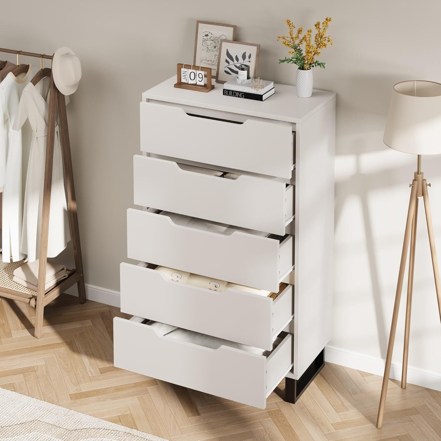 5 Dresser for Bedroom, 45.2" Tall Dresser, Freestanding Vertical Drawer Cabinet with Storage, Wooden Closet Storage Chest