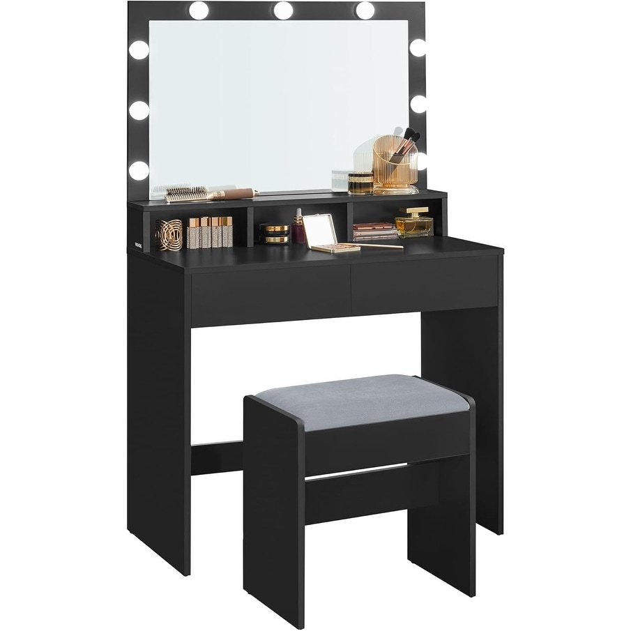 Black Vanity Desk with LED Mirror, Storage & Stool - Modern Makeup Dressing Table