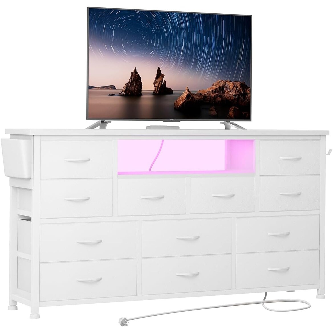 45'' TV Dresser with Power Outlet, LED Lights, 12 Drawers, and Anti-Toppling Design