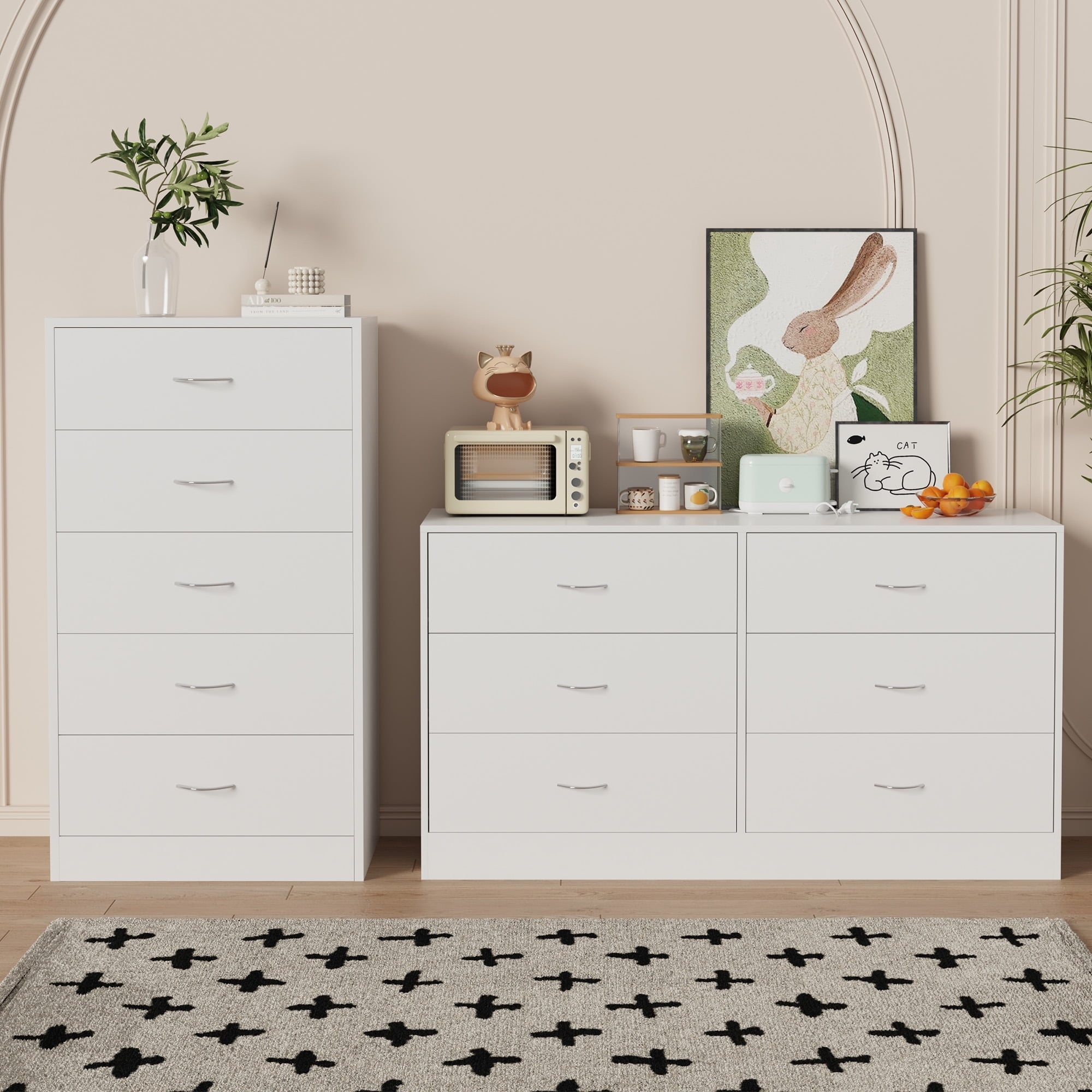 5 Drawer Dresser White Modern Wood Chest of Drawers for Bedroom