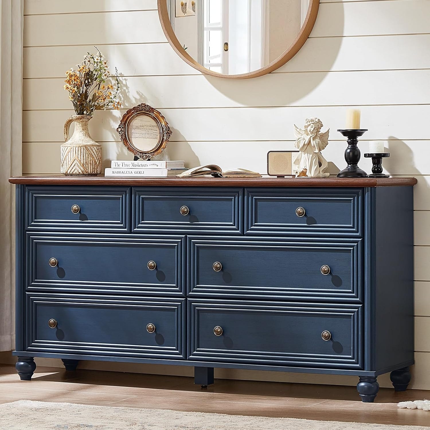 7-Drawer Rustic Wood Dresser with Metal Handles, Vintage Design for Bedroom or Living Room