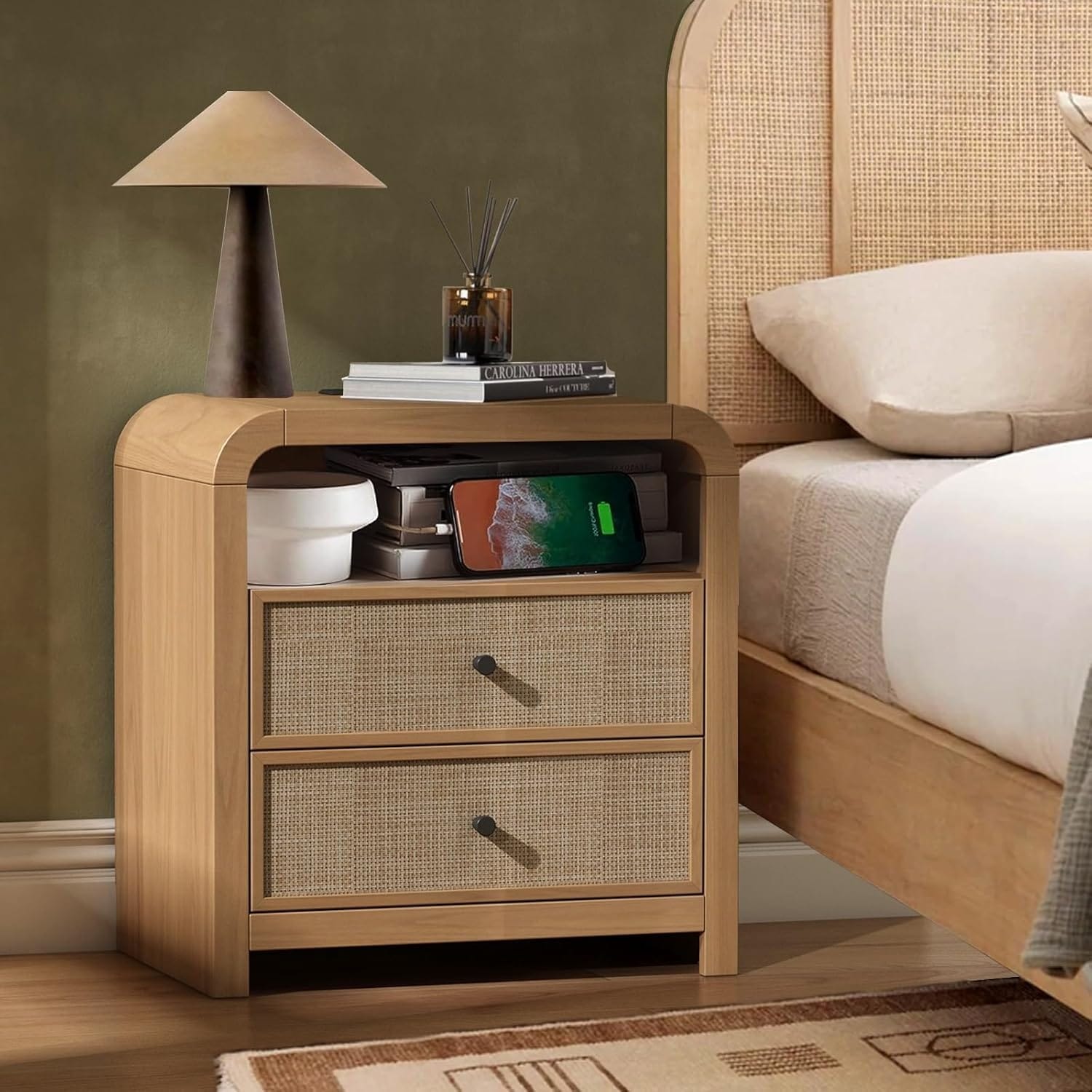 2 Drawer Tall Rattan Dresser with Ample Storage, Thickened Curved Profile Design for Bedroom or Living Room