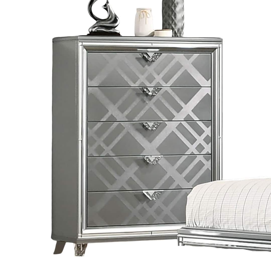 Contemporary Style 1pc Chest Acrylic Legs Embossed Art Deco Diamond Faux Drawers Handles Silver Finish