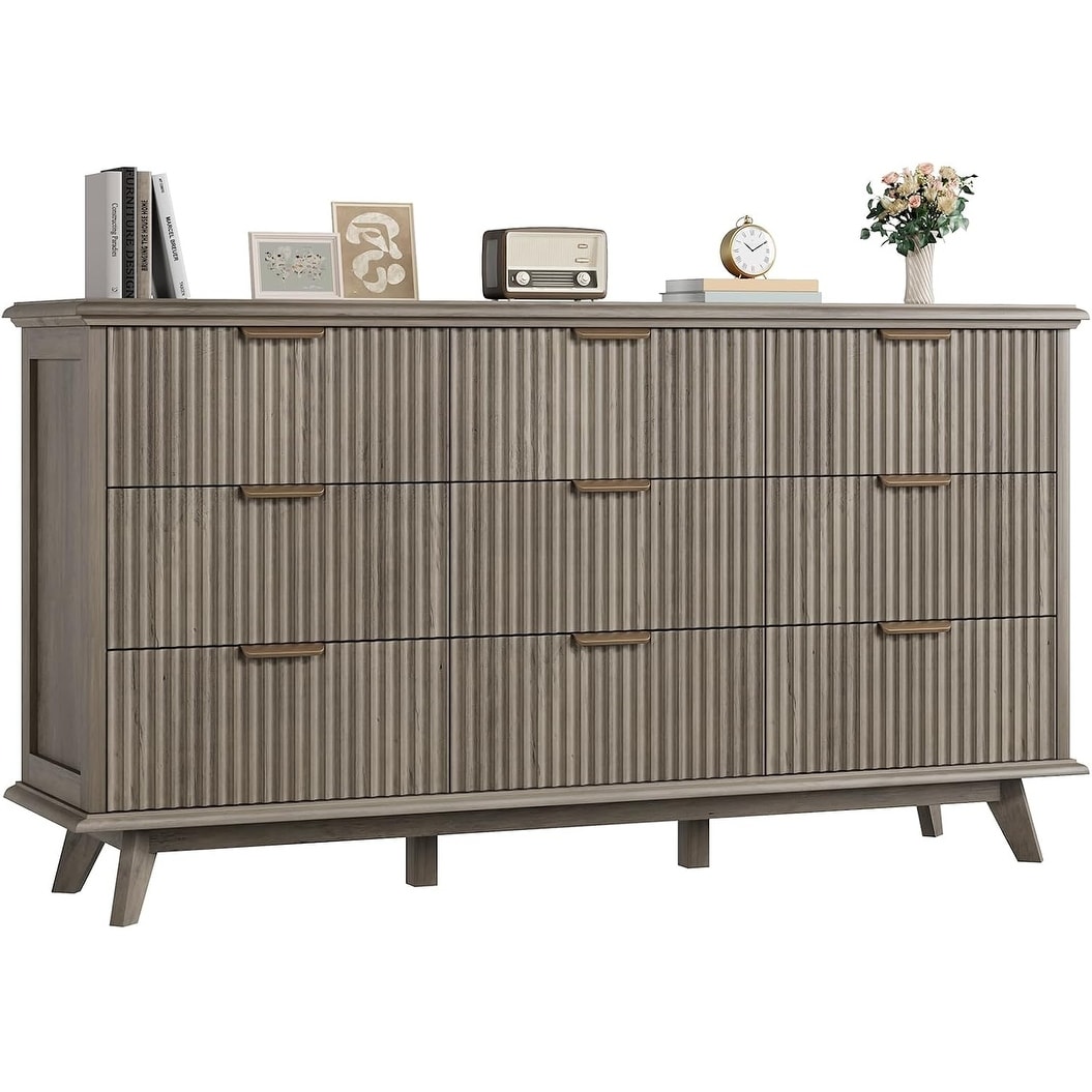 59.1 Inch Wide Modern 9-Drawer Dresser with Metal Handle, TV Stand, Bedroom Storage Organizer, Grey