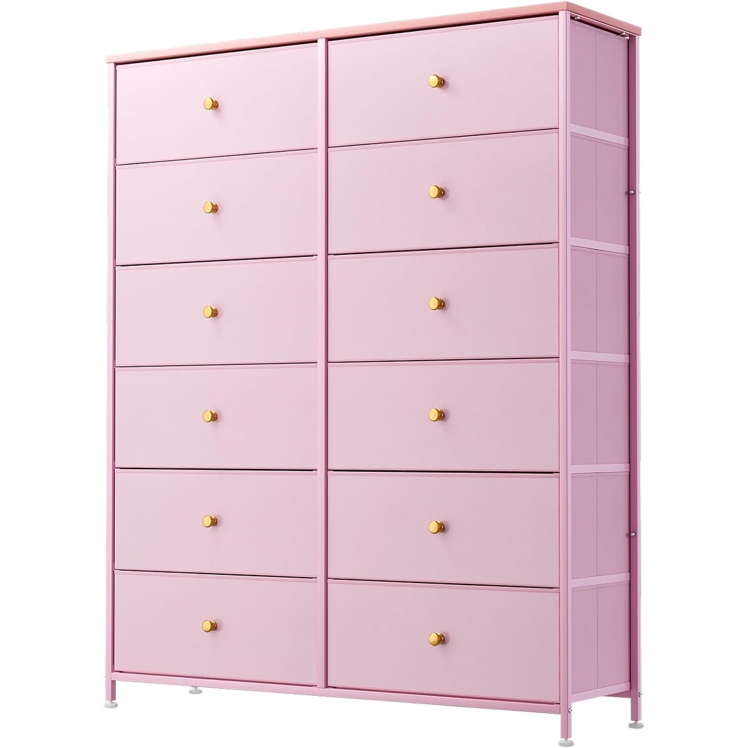 12-Drawer Fabric Storage Tower with Wooden Top, 35.2'' Wide 6-Layer Organizer for Living Room, Nursery, Closet