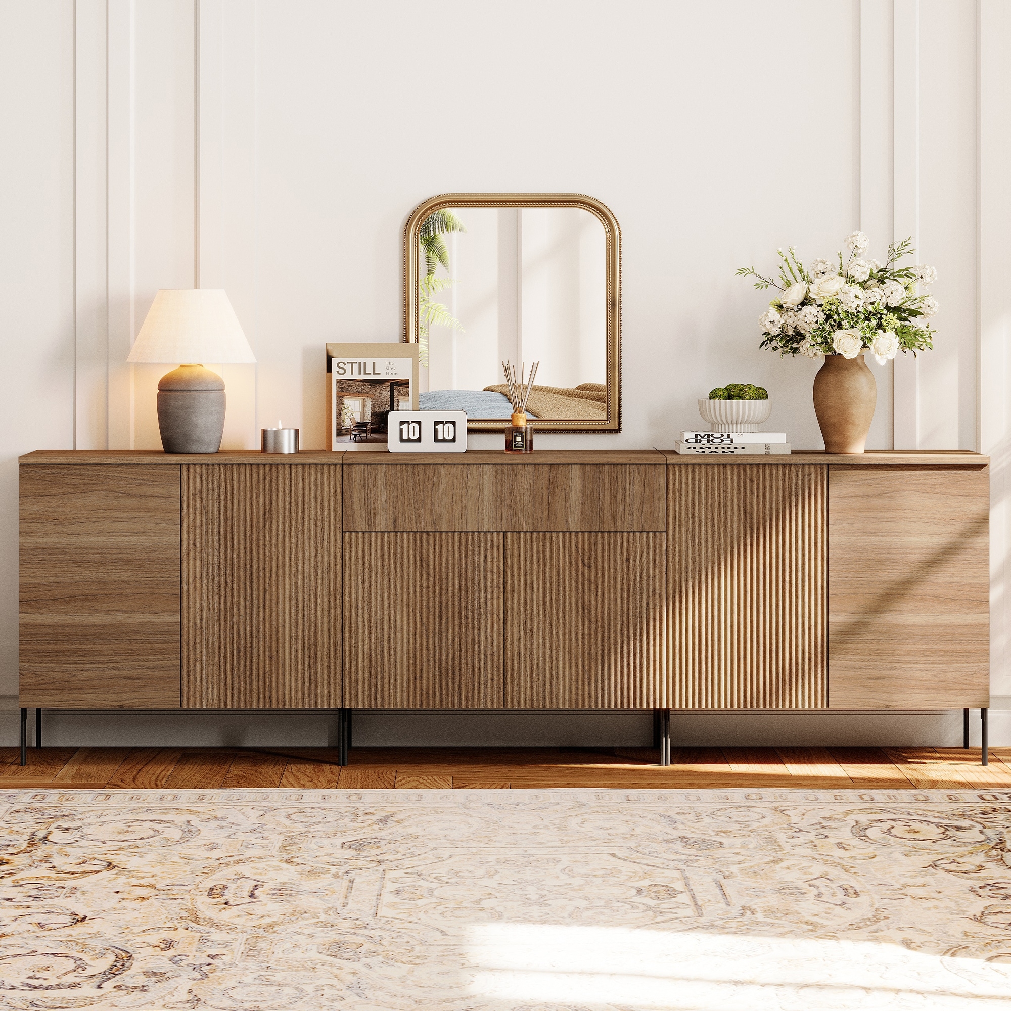 94.5" Modern Reeded Drawer Dresser Set With Doors, Minimalist Chest Of Drawers With Storage