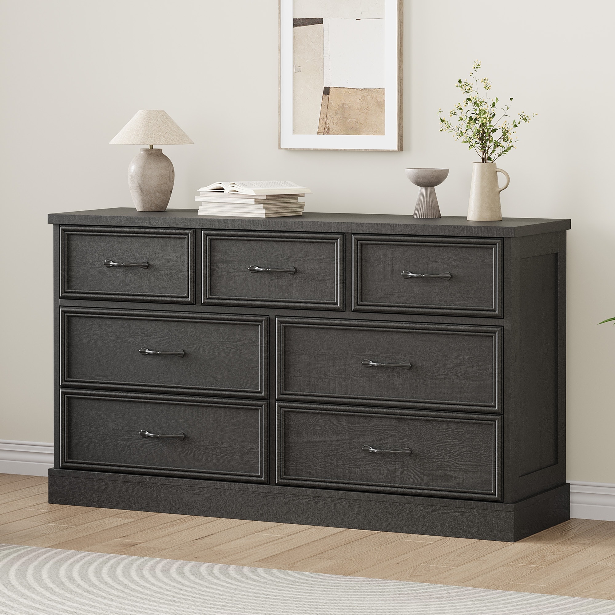 7 Drawers Dresser for Bedroom, Modern Chest of Drawers with Metal Handle, Wood Dresser TV Stand