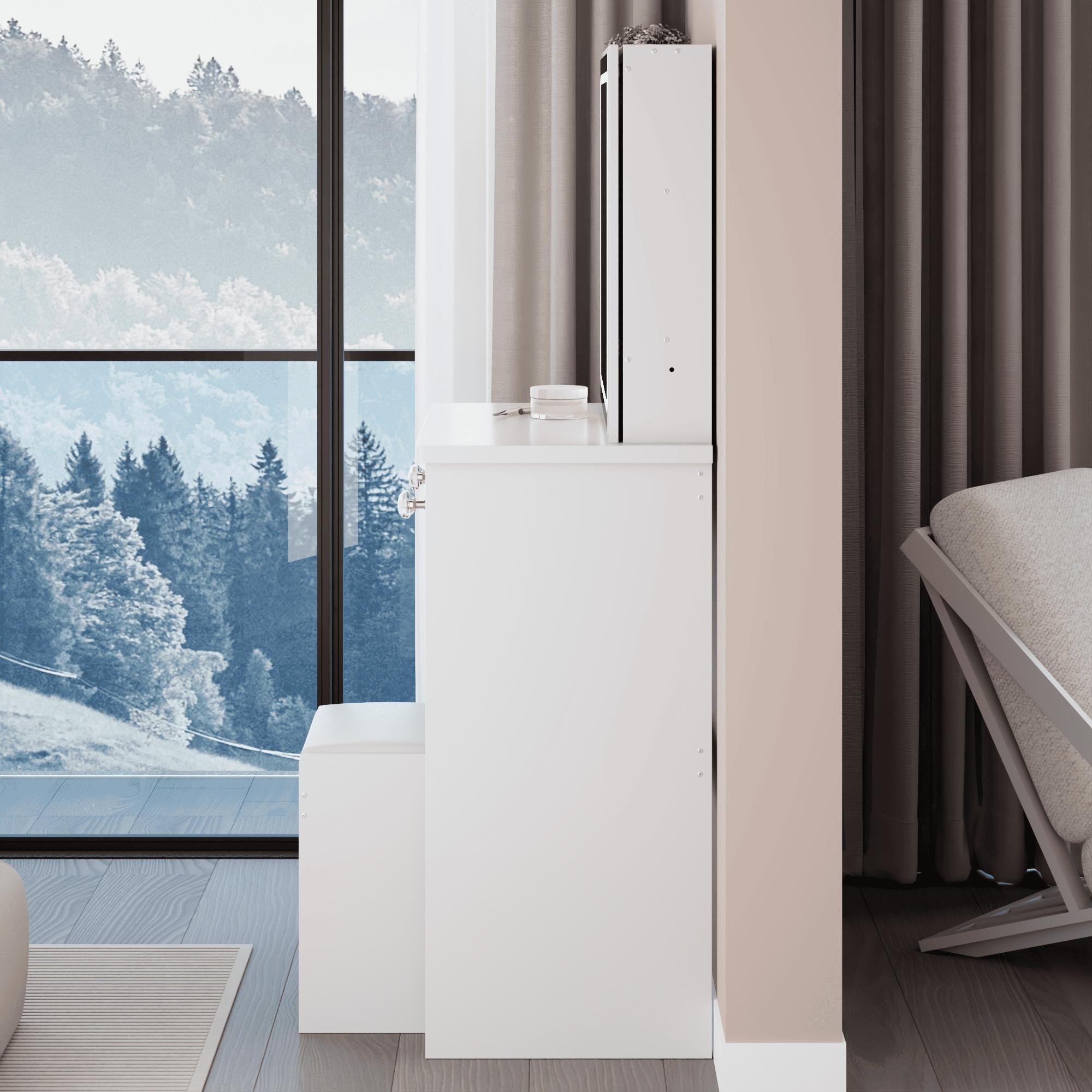 37" Middle Size Left Bedside Cabinet Vanity Table + Cushioned Stool, Extra Large Right sliding mirror