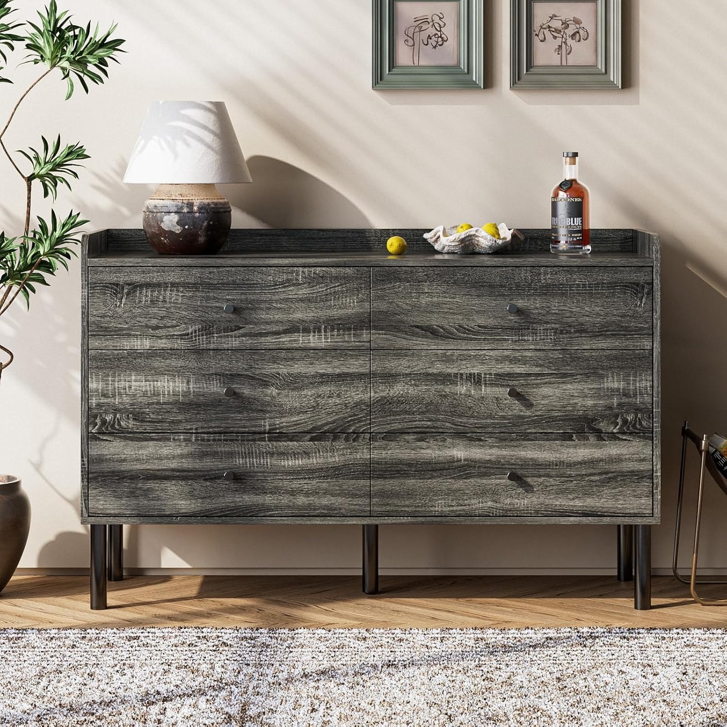 Modern 6-Drawer Grey Dresser with Wide Drawers and Metal Handles for Bedroom, Hallway, or Entryway