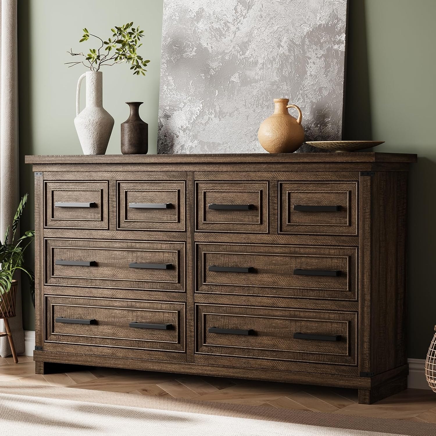 Farmhouse 8 Drawer Dresser for Bedroom Rustic Wood Chest of Drawers Vintage Storage Organizer for Living Room TV Stand 55 Inch