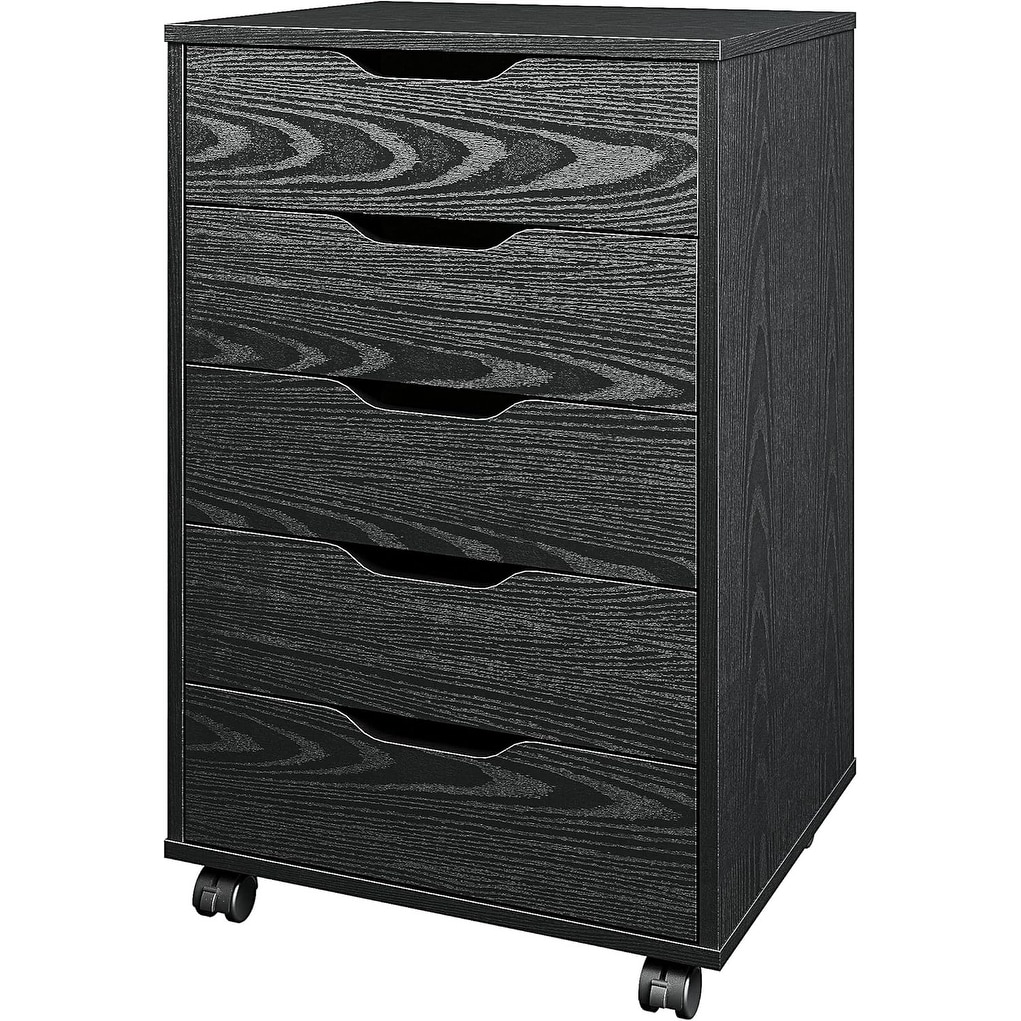 5/7 Drawer Wooden Tall Dresser with Wheels, Black Storage Cabinet for Office and Bedroom