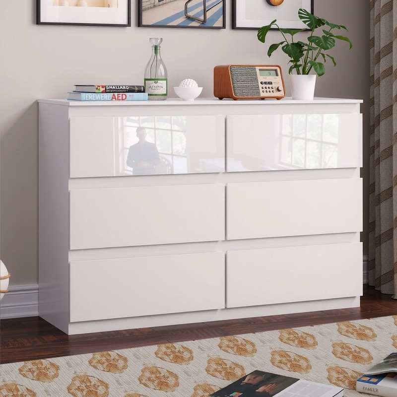 6-Drawer Dresser Chest, Wide Storage Cabinet, Matte Black/High Gloss White