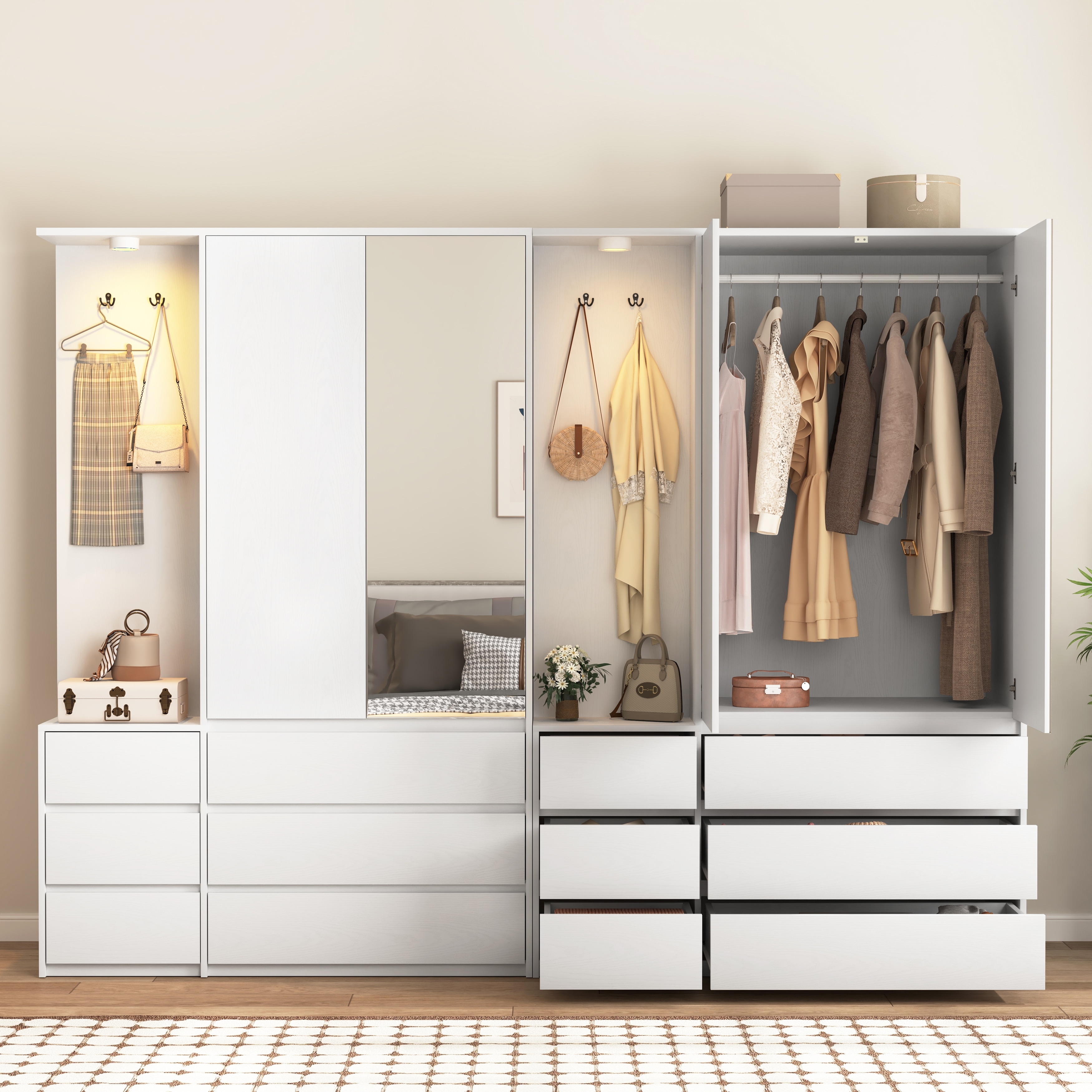 Wardrobe Closet 70.8" H, Bedroom Wooden Wardrobe with 3 Doors 2 Drawers, Modern Clothing Storage Cabinet Combination