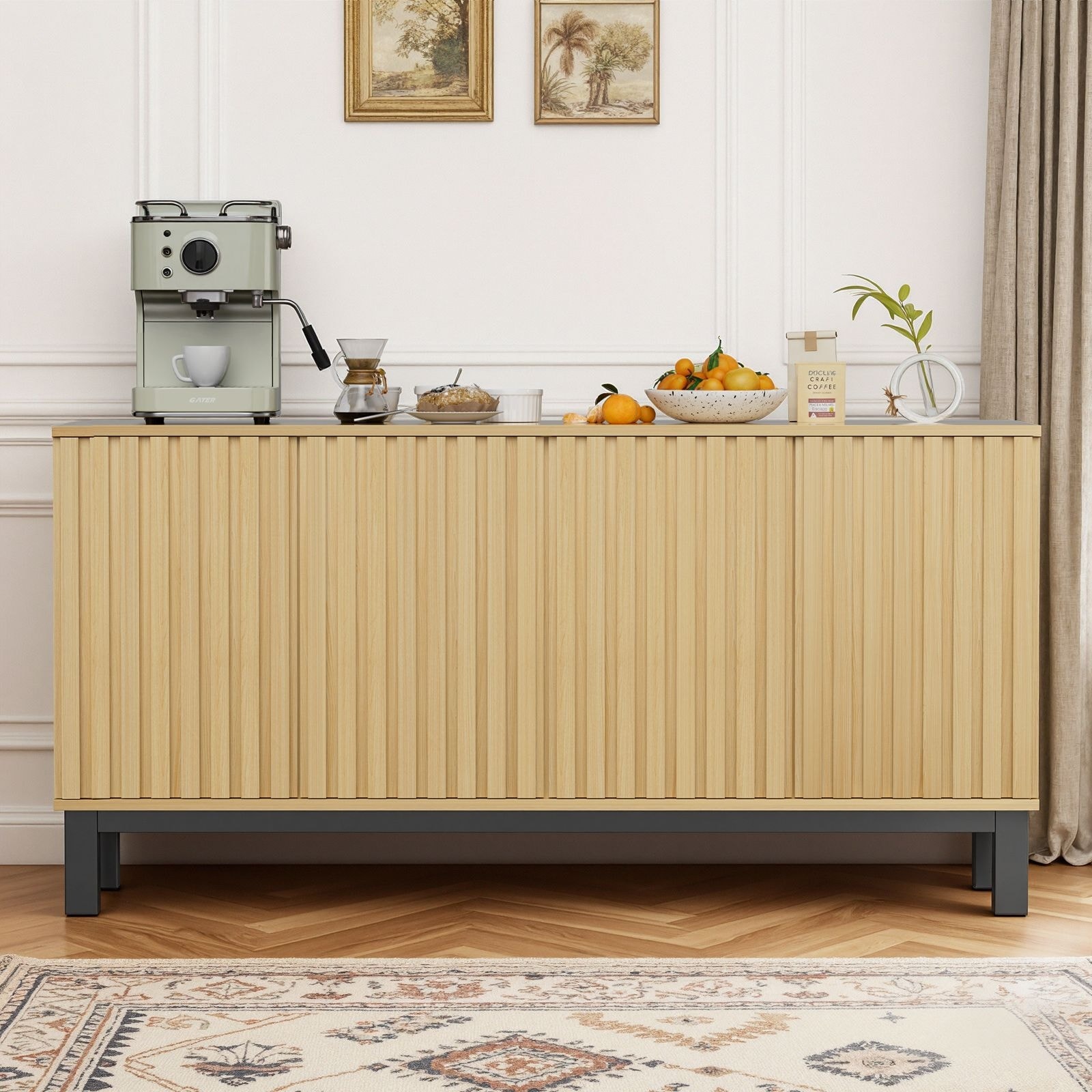Meyreso 63 Inch Fluted Buffet Cabinet with Shelves & 4 Doors