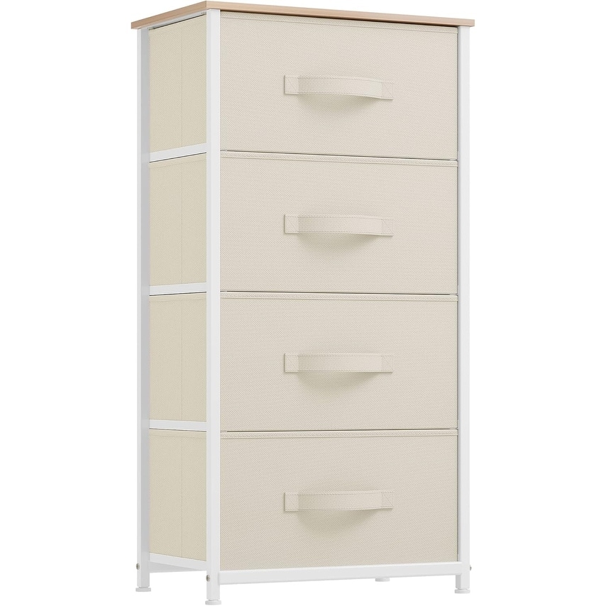 4-Drawer Fabric Dresser with Sturdy Steel Frame and Wooden Top for Bedroom, Living Room, and Closet Storage