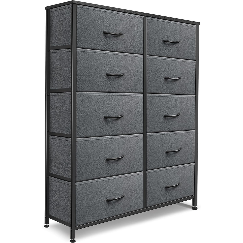 10-Drawer Fabric Dresser Organizer for Bedroom, Closet, or Entryway, Grey and Charcoal Black