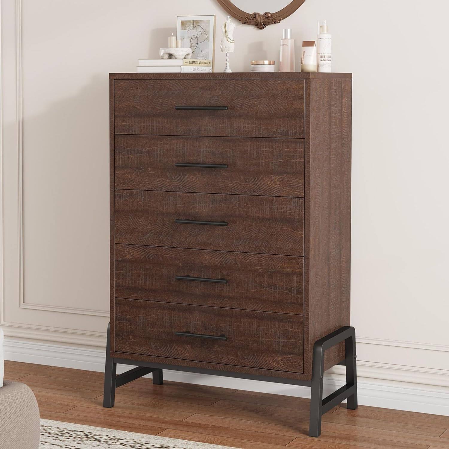 Freestanding Drawer Dresser with Storage, Wooden Closet Storage Chest for Living Room Bedroom Entryway