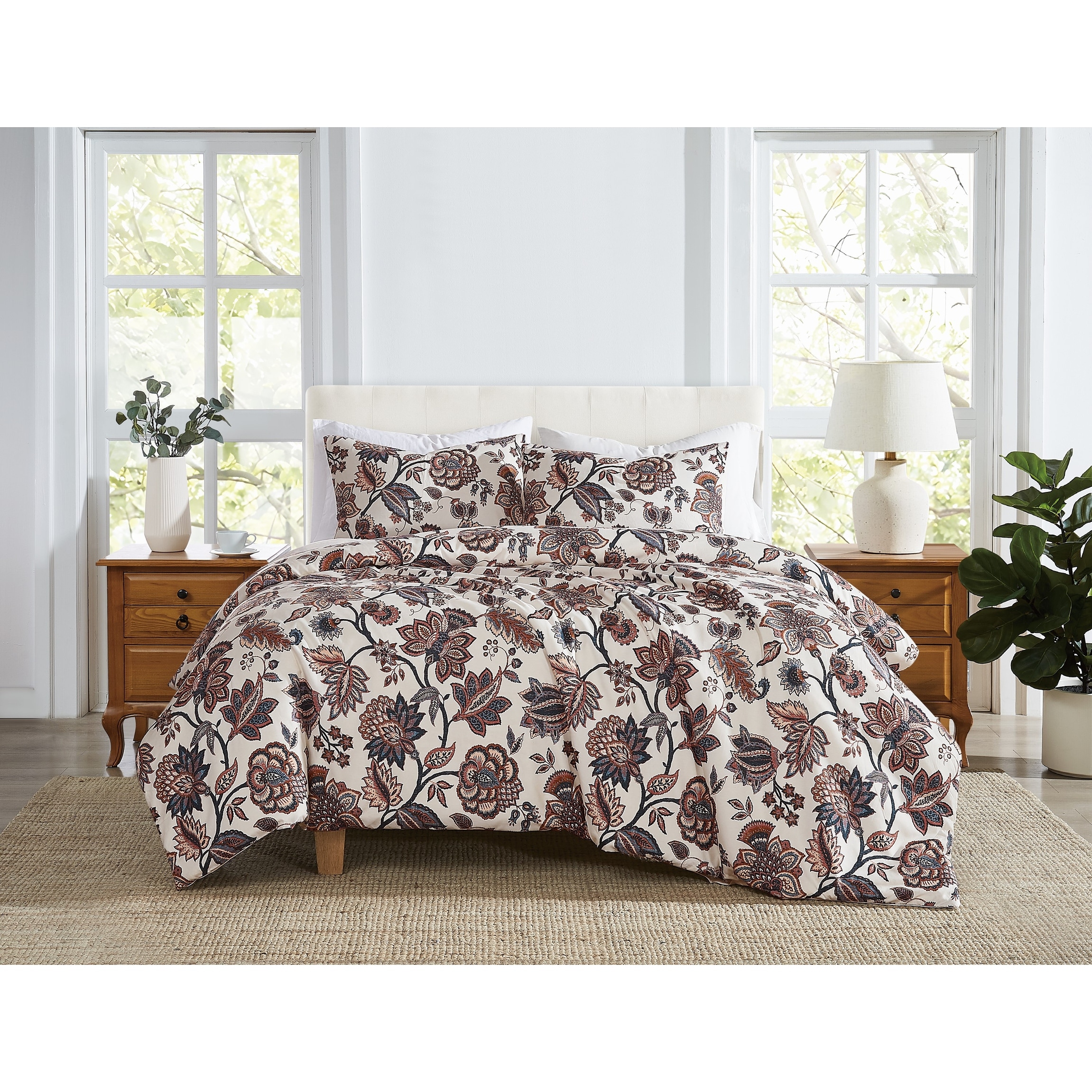 Pointehaven Sylvan Cotton Printed Flannel Oversized Duvet Set - Multi-color