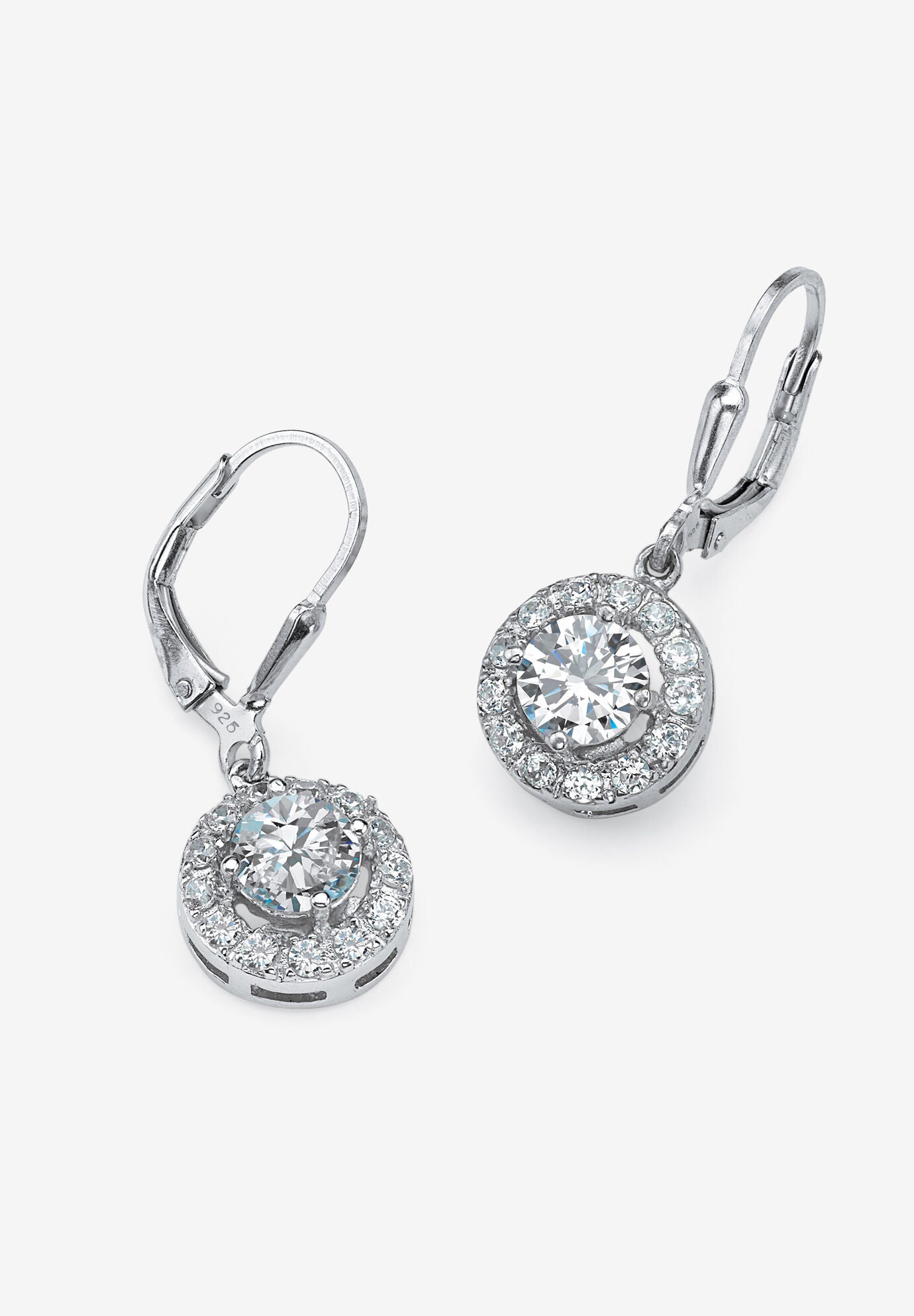 Women's Sterling Silver Halo Drop Earrings Cubic Zirconia (2 1/3 cttw TDW) by PalmBeach Jewelry in Cubic Zirconia