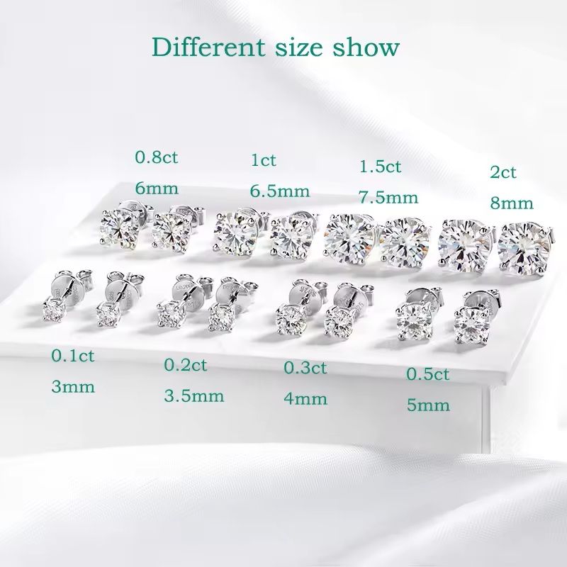 Moissanite Stud Earrings In S925 Silver With Platinum Plating 5ct & 5ct