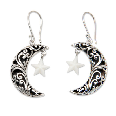 'Moon-Shaped Leafy Dangle Earrings with Star Accents'