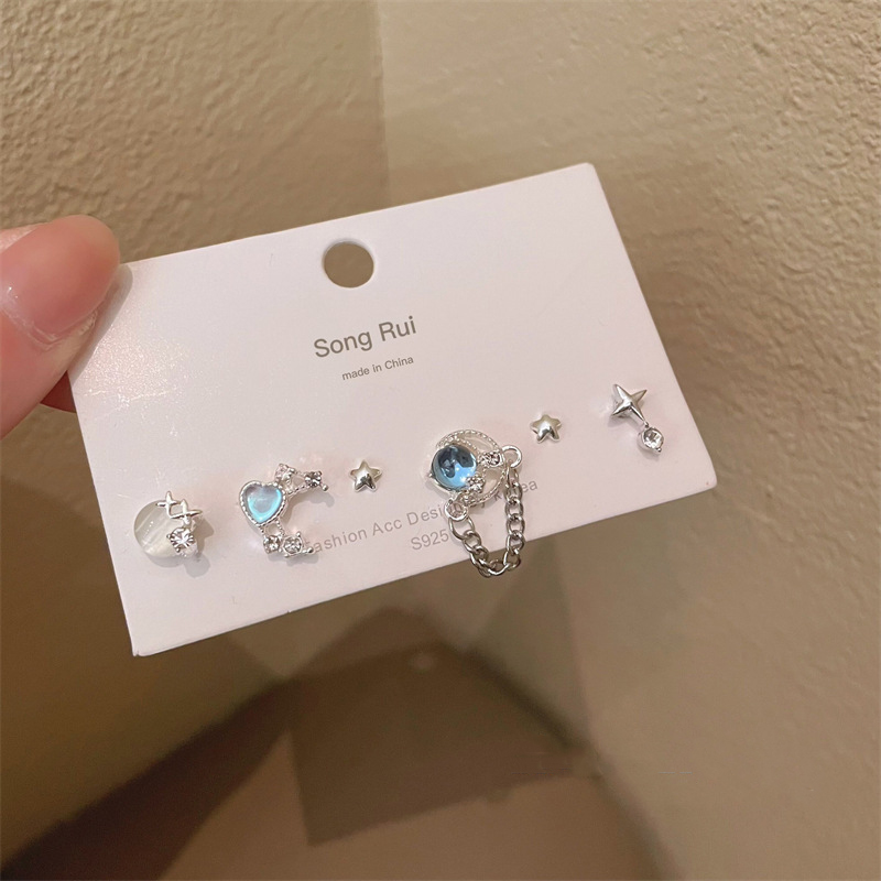 2023 Trendy Jewelry Gifts: 6Pcs set Silver Rhinestone Butterfly & Punk Heart Earring Sets For Women Metal Color: AY 5796301