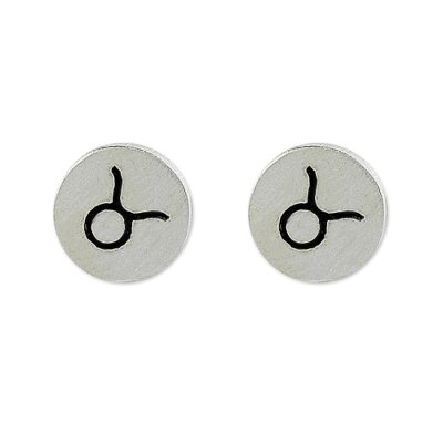 Satin Taurus,'Sterling Silver Taurus Stud Earrings from Thailand'