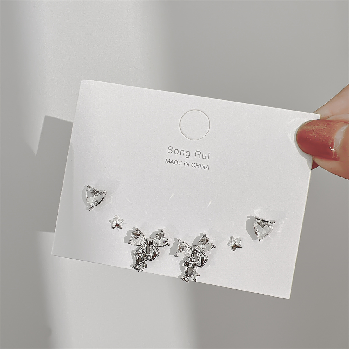 Small Stainless Steel Butterfly, Star, Moon & Heart Stud Earrings Set Women's Punk Piercing Minimalist Jewelry Metal Color: A Gold