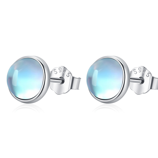 Modian 925 Sterling Silver Moonstone Stud Earrings, 4 6MM Round, Platinum Plated Women's Jewelry 6mm
