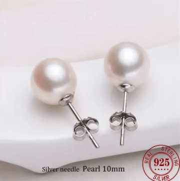 925 Sterling Silver Freshwater Cultured Pearl Stud Earrings: 6mm 8mm 10mm For Women Ideal Gift Jewelry 10mm