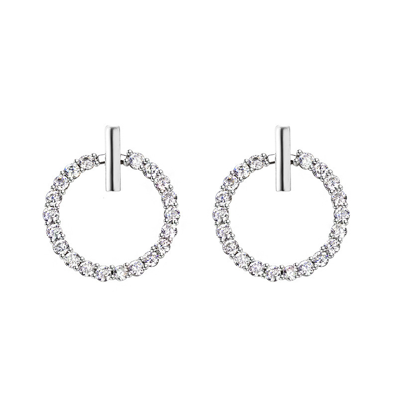 Free Shipping: 925 Sterling Silver Crystal Rhinestone Geometric Round Stud Earrings Fashion Jewelry For Women Gem Color: E04 A