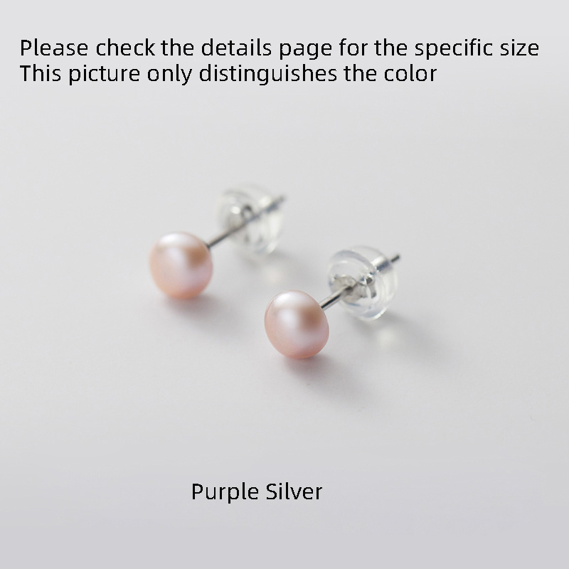 La Monada Real 925 Silver Freshwater Pearl Stud Earrings For Women Small Natural Pearl Earrings For Girls PurpleSilver 6 7mm
