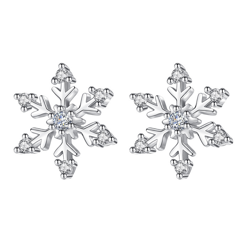 925 Sterling Silver Crystal Snowflake Stud Earrings For Women Fashionable XY0236 XY0236